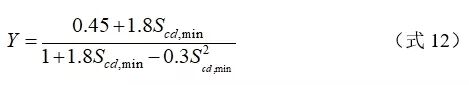 式中,Scd,min为疲劳荷载引起的最小压应力,Scd,min=γsd σc,min ηc / fcd,fat;Scd,max为疲劳荷载引起的最大压应力,Scd,max=γsd σc,max ηc / fcd,fat; γsd为荷载分项系数;ηc为计算系数;Y同样为计算系数,计算公式如式(12)所示。