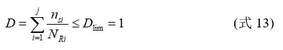 3)当以上条件都不满足时,需通过计算得到完整的应力谱,并需根据Miner线性疲劳累计损伤准则按式(13)进行验算:
