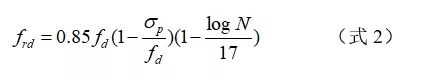 式中,frd 为UHPC的抗压疲劳强度设计值;fd为UHPC的抗压强度设计值,需考虑1.3的材料分项系数;σp为UHPC结构中恒载引起的应力;N为UHPC结构的疲劳寿命。
